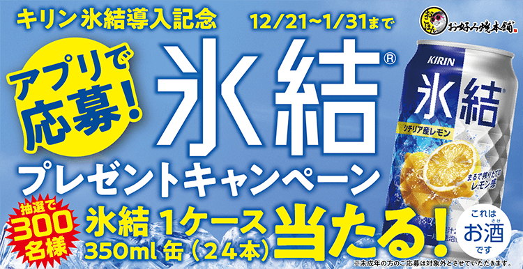 対象期間中にアプリ内のキャンペーンバナーから応募すると、抽選で300名様にキリン 氷結® シチリア産レモン 350ml×24缶(1ケース)をプレゼント!