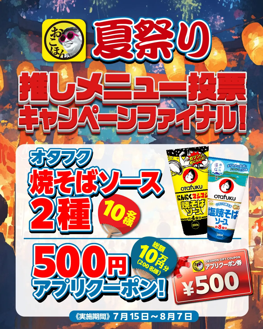②お好み焼本舗 500円アプリクーポン(抽選で200名様) - 抽選・当選発表について