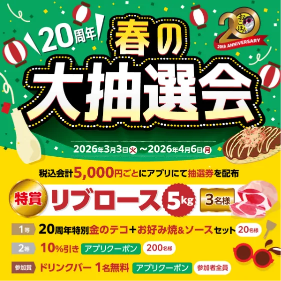 ・抽選結果は「お好み焼本舗」公式アプリにてご確認いただけます