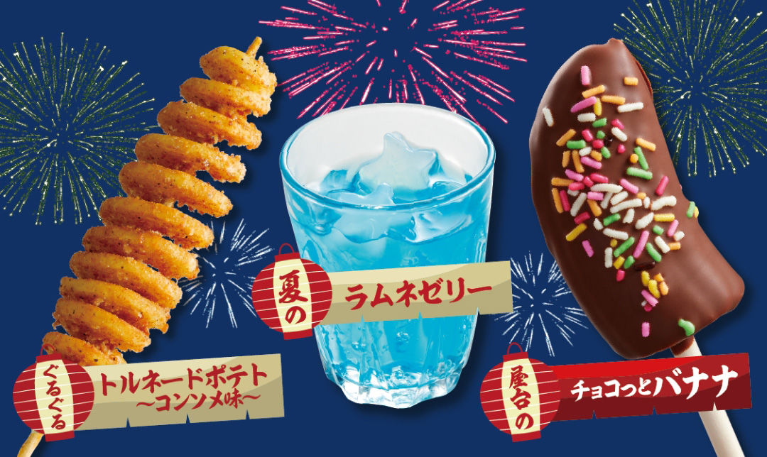 夏を感じる「期間限定メニュー」が食べられる! チョコっとバナナ、トルネードポテト、ラムネゼリーなど夏祭りメニューをご用意しております。