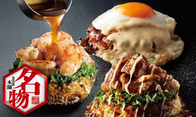 当店のお好み焼は、様々な商品を楽しんでいただけるようハーフサイズです