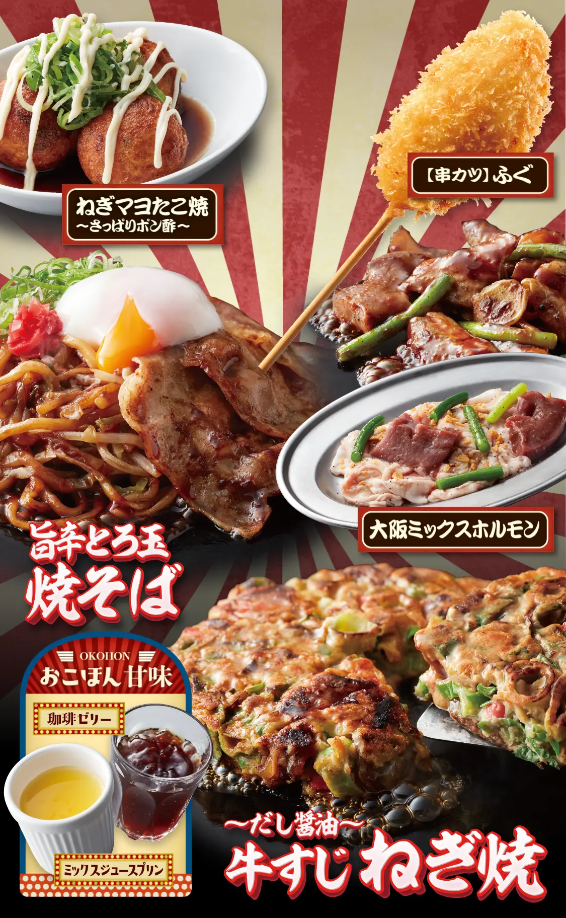 「食いだおれなにわ祭」を開催します!大阪発祥の「牛すじねぎ焼~だし醤油~」や関西名物どろソースを使用した「旨辛とろ玉焼そば」、さらに「大阪ミックスホルモン」など、「これぞ大阪!」な絶品グルメが勢揃い! 春限定のメニューをぜひお楽しみください!