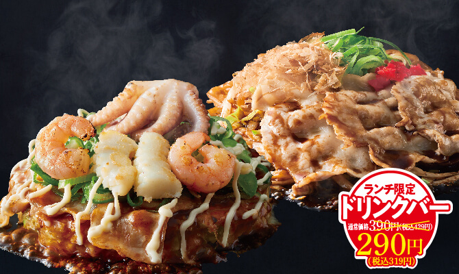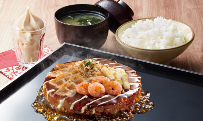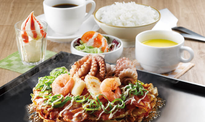 おこほん名物のお好み焼・デザートがお好みで選べるランチ限定のお得なコース!