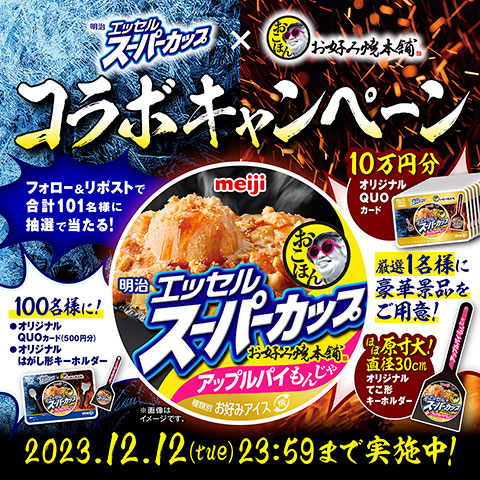 2023年12月5日より、明治 エッセル スーパーカップ×もんじゃ!?なコラボメニューを販売いたします。