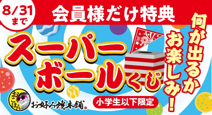 期間中、おこほん公式アプリにて配布するスーパーボールくじの無料引換券を店頭でご提示いただいたお子さまに、ハズレなしのスーパーボールくじをお楽しみいただけます!
