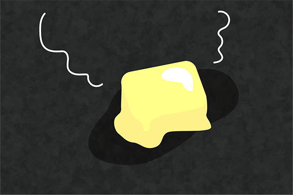 ①鉄板にバターを乗せて溶かす